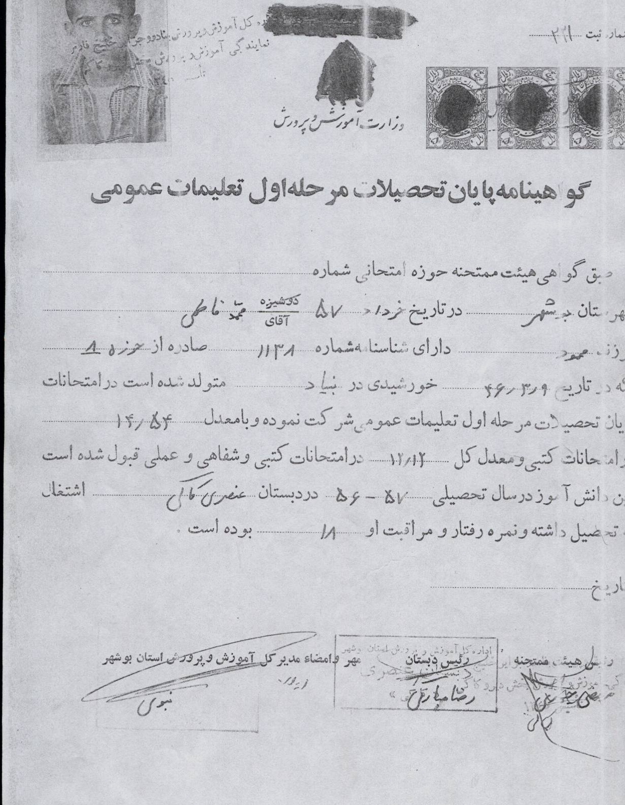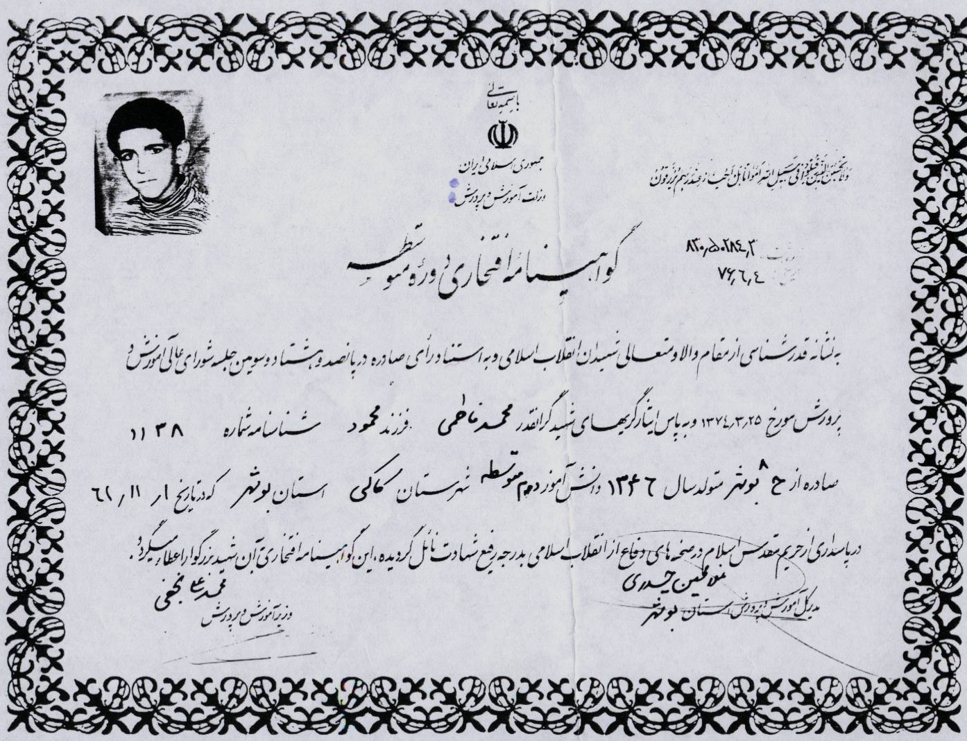 مدارک تحصیلی شهید دانش آموز محمد فاطمی